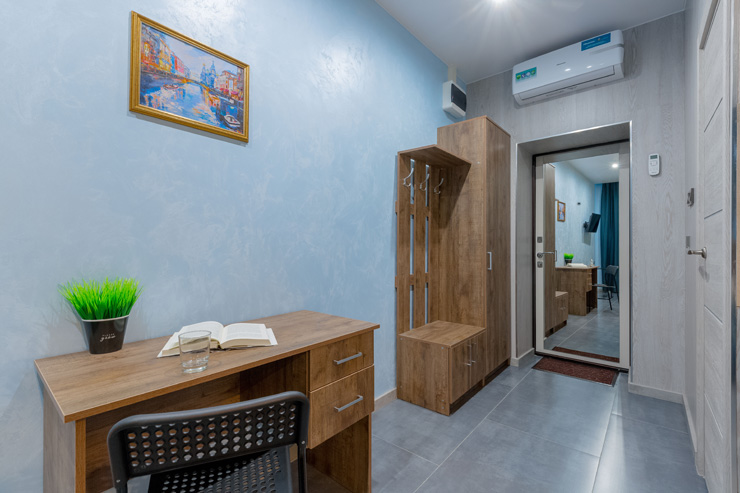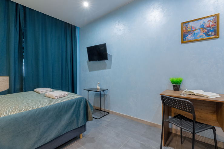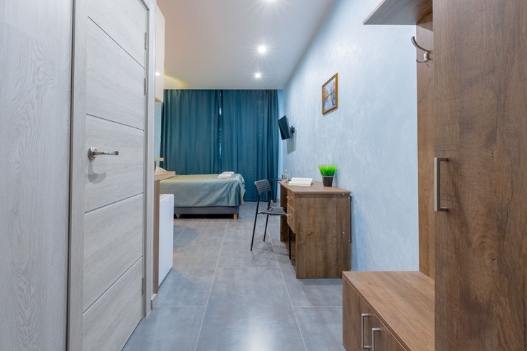 | Апартаменты 2-местные (2-4) | 20 кв.м. | 2 чел. | Мебель (вешалка, зеркало, кровать двуспальная, прикроватные тумбочки, стол, стулья, шкаф), Мини-кухн... | |
